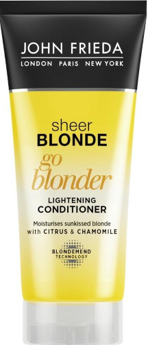John Frieda Go Blonder Conditioner 50ml. De conditioner herstelt de vochtbalans en maakt het haar gezond en zacht. De conditioner bevat geen ammoniak of peroxide en is mild genoeg voor dagelijks gebruik. Voor een frisse, zonnige look van alle nuances van natuurlijk, gekleurd of gehighlight blond haar.